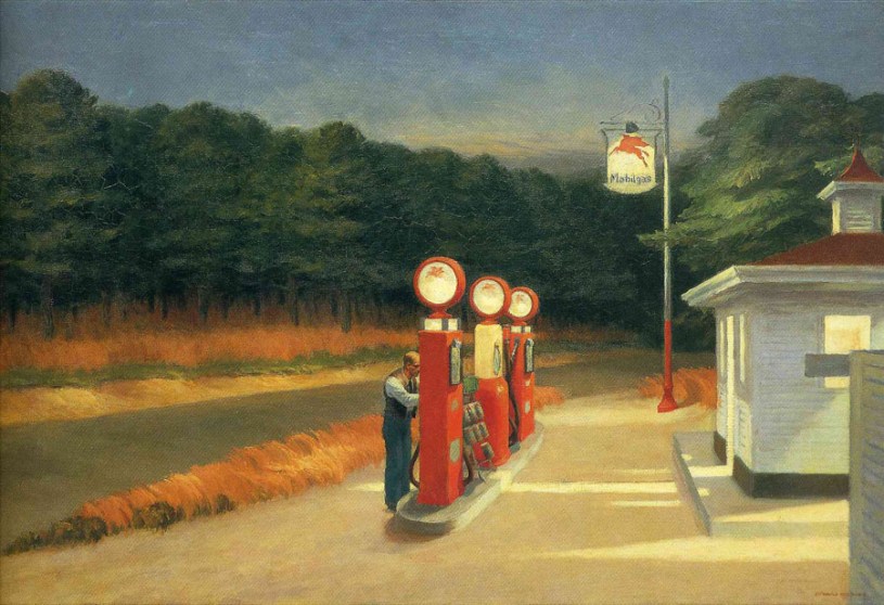 Restaurantes, bares, hoteles, oficinas. Lugares de paso. Paisajes urbanos que se presentan sin vida y unos protagonistas que no tienen nada que decirse, los unos a los otros. En varias de sus pinturas, el artista parece que quiso plasmar al hombre moderno de una sociedad en la que conseguir el «sueño americano» era posible. A pesar de tener todas sus necesidades básicas cubiertas, nos enseña que la soledad también es posible en este contexto.