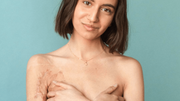 Beckie. Su cicatriz fue por una operación a la que se sometió para conseguir una reducción de pecho. Durante años, no sentía que su cuerpo fuera suyo. No se sentía que la representara. A los 18 años, se sometió a la operación después de 3 años ahorrando para conseguir el dinero suficiente. No debió ser una decisión fácil. Ella nos enseña su cicatriz como una parte más de ella.